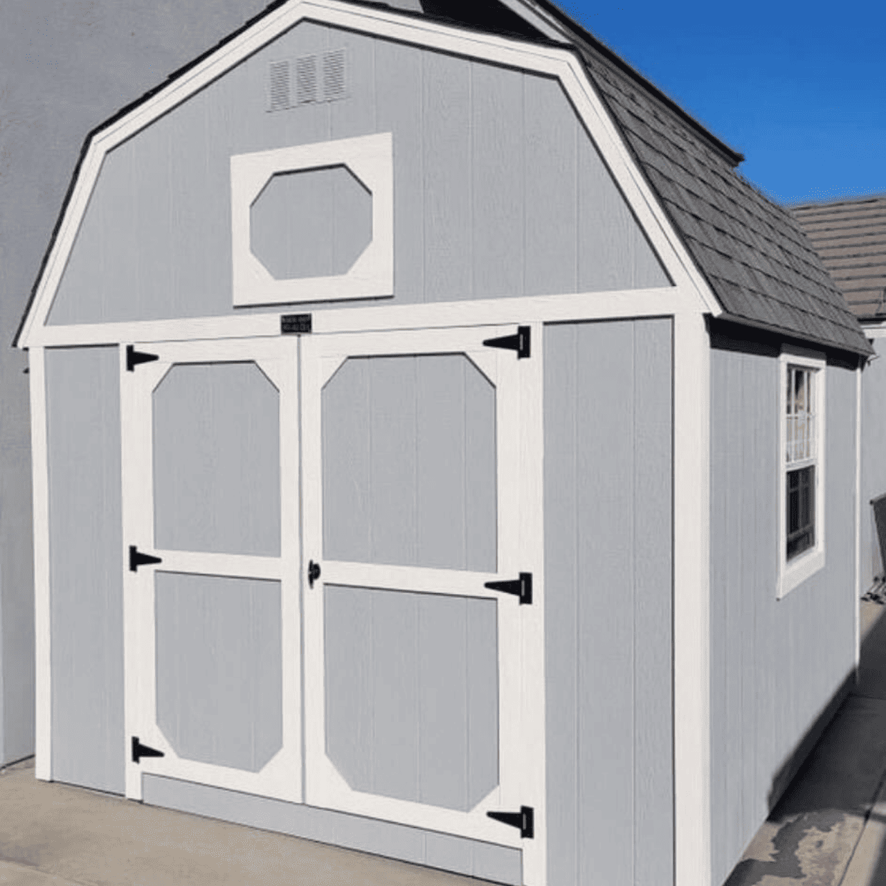 Our Regular Barn may have 4’ sidewalls but, don’t be fooled! It’s anything but small! With 8’ to the peak, this compound shed is way roomier than it looks!